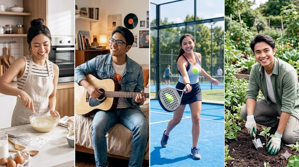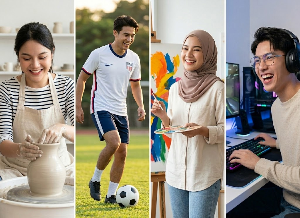 Belum lagi jika kita sering terjebak membeli peralatan hobi mahal hanya karena aktivitas tersebut sedang viral di internet. Studi dari Nature Medicine 2023 yang melibatkan 93.000 orang di 16 negara menemukan bahwa kunci kebahagiaan dan kesehatan mental justru terletak pada hobi yang nyata. Efeknya akan jauh lebih optimal saat kita memilih aktivitas yang menjadi satu frekuensi penyeimbang dari apa yang paling terkuras selama bekerja.