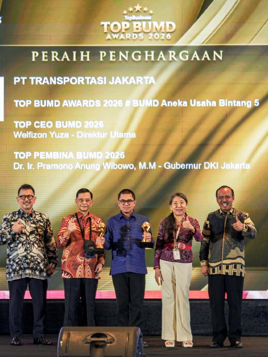 Acara yang digelar di Hotel Raffles Jakarta itu juga memberikan penghargaan kepada Pramono Anung Wibowo sebagai Top Pembina BUMD. Sementara itu, Transjakarta meraih dua kategori utama, yakni TOP BUMD Awards 2026 Aneka Usaha dengan predikat Bintang 5, serta TOP CEO BUMD 2026 yang diberikan kepada Direktur Utama, Welfizon Yuza.