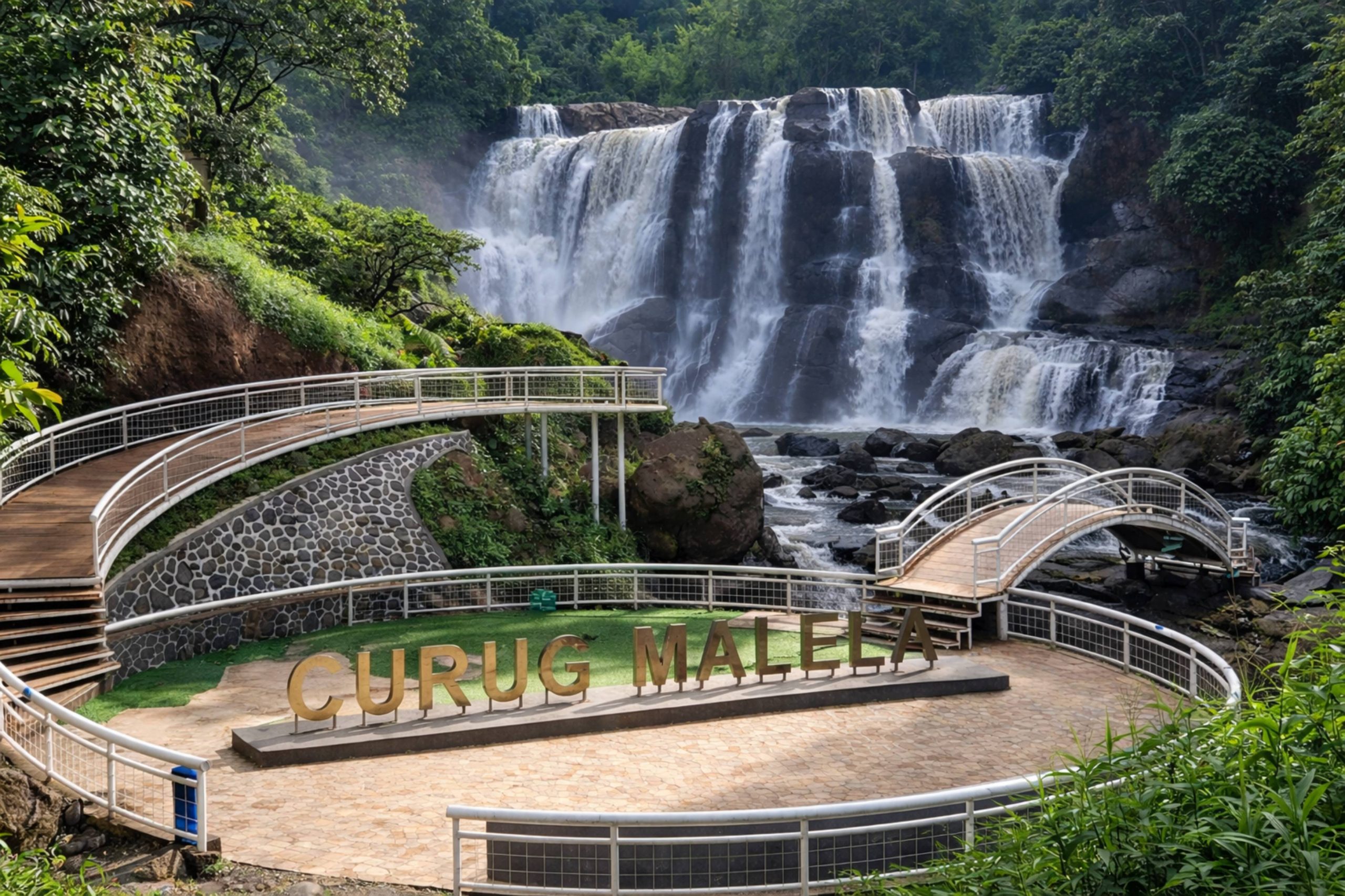 Dalam beberapa tahun terakhir, Curug Malela telah mengalami revitalisasi besar-besaran yang mengubah wajah kawasan ini menjadi lebih modern tanpa menghilangkan sisi alaminya. Salah satu penambahan yang paling mencolok adalah pembangunan anjungan atau jembatan pandang yang memungkinkan pengunjung mengambil foto dengan latar belakang air terjun secara utuh.