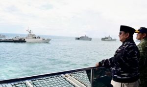Presiden Prabowo Saksikan Kekompakan Armada TNI AL di Teluk Jakarta